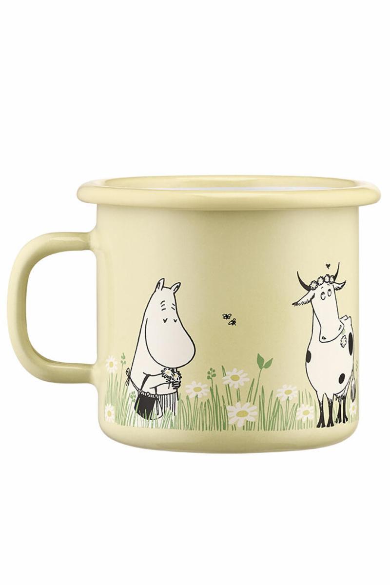 Mummikoppen med Mummifamilien som passer perfekt i hendene på en liten turgåer. Emaljekoppen har en myk kantovergang for å skape en behagelig overflate å drikke fra. Emaljekoppen er godkjent for br...
