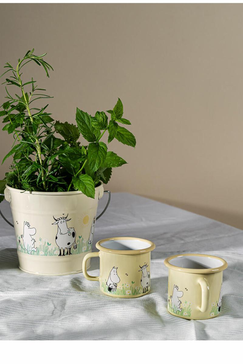 Mummi bøtte med motiv fra "I hagen". Ta med deg Mummifamlien ut i hagen for å plukke grønnsaker fra grønnsakshagen, eller la barnet leke i sandkassen med bøtten. Her er det bare fantasien som sett...