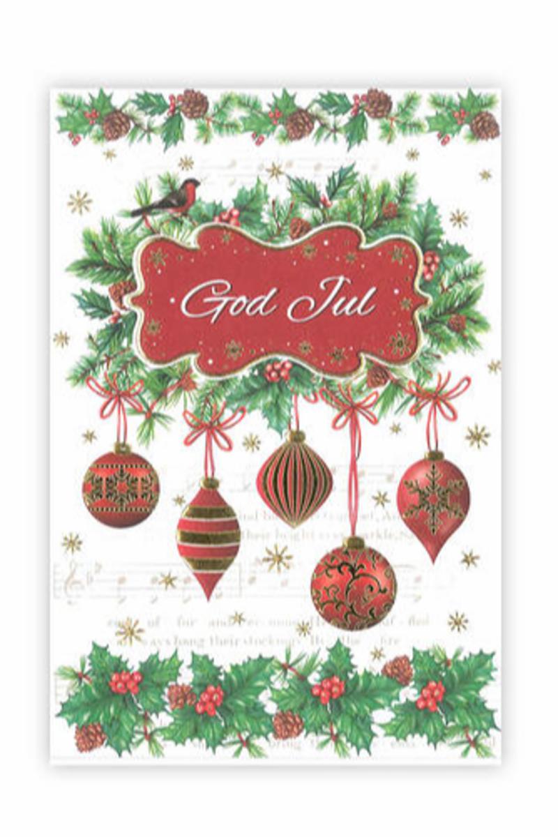 Dobbelt julekort med konvolutt. Perfekt til gaver eller som en julehilsen. Tekst: God jul! Str: 17 x 11,5 cm.