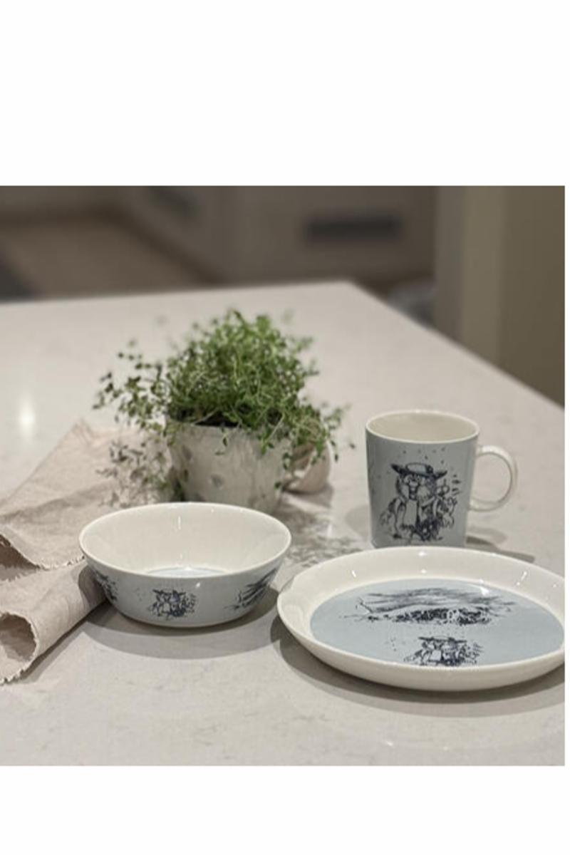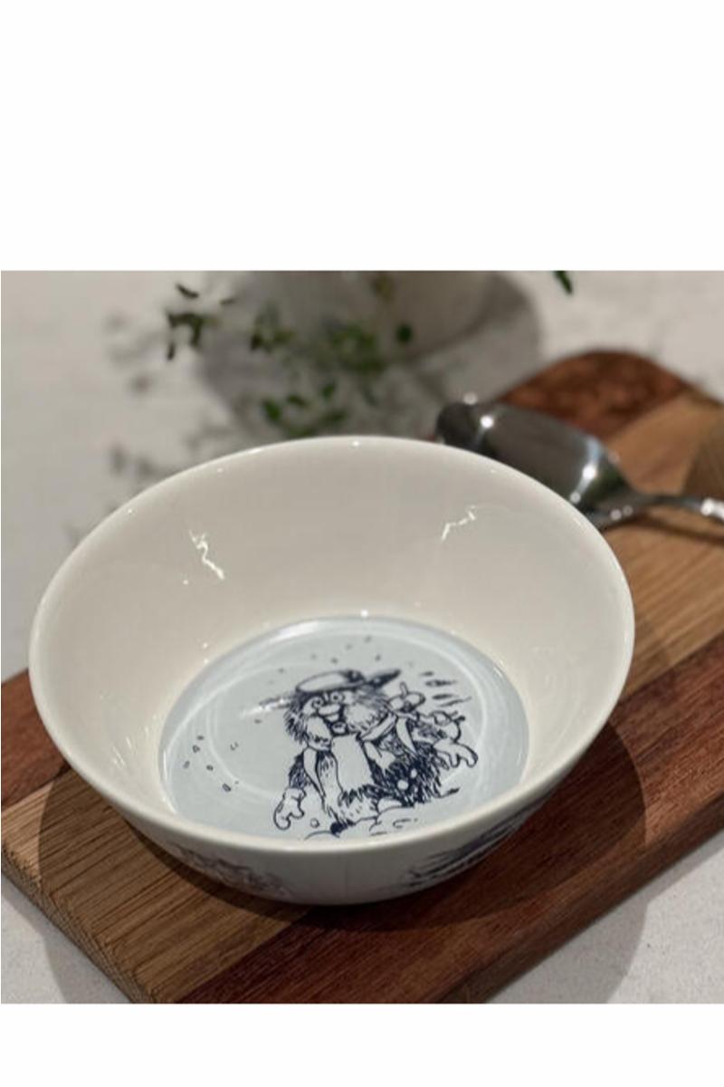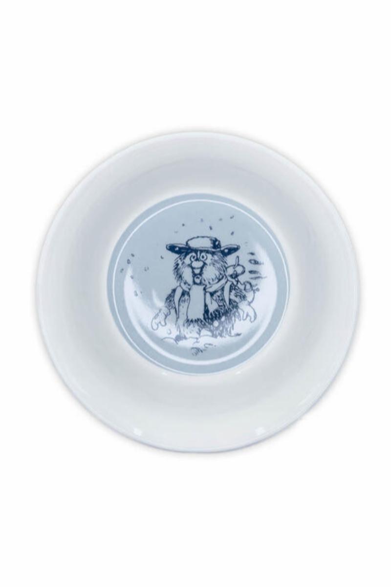 Flåklypa porselenbolle med motiv av Ludvig i snøflyka. Den er laget til alle Flåklypa-fans som ønsker å ta med seg Flåklypa historien inn i hverdagen, enten det er til frokostbordet eller kveldsmaten.