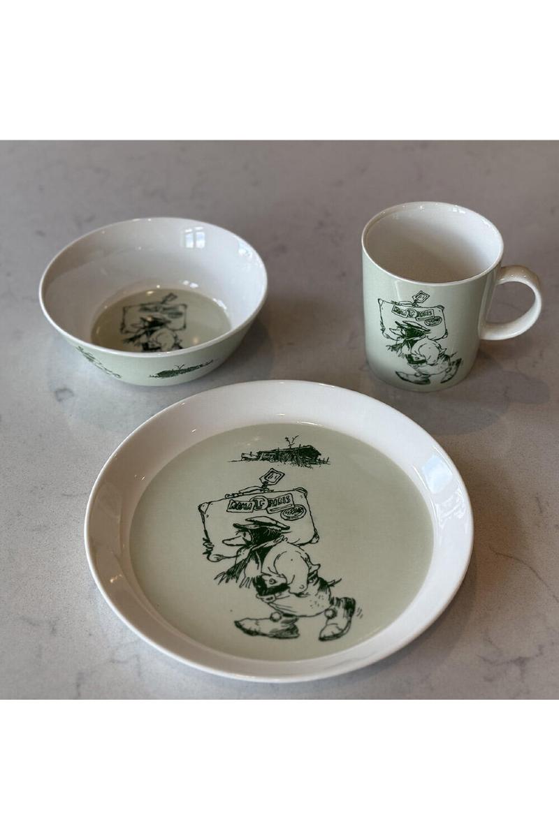 Flåklypa porselenasjett med motiv av Solan i Italia. Den er laget til alle Flåklypa-fans som ønsker å ta med seg Flåklypa historien inn i hverdagen, enten det er til frokostbordet eller kveldsmaten.