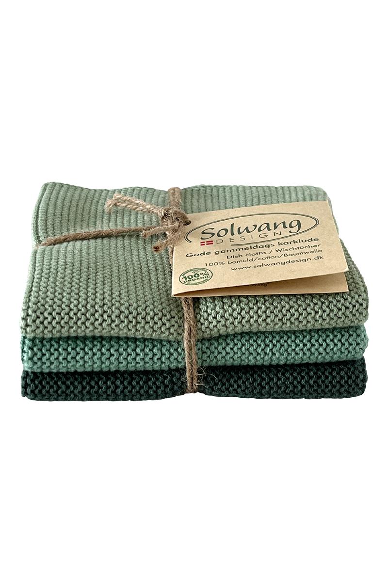 NOK 189.00 3 stk strikkede økologiske kluter i antikkgrønn kombinasjon. Vakkert knyttet med hyssing og etikett.
