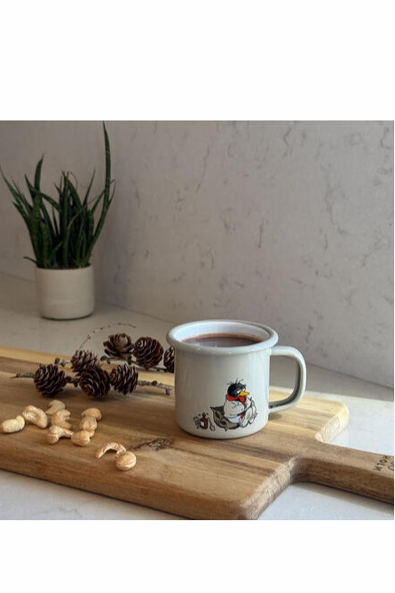 Nyt drikken med Solan og Flåklypa! Emaljekoppen har en myk kantovergang for å skape en behagelig overflate å drikke fra. Emaljekoppen er godkjent for bruk på komfyr, induksjonsplate, ovnen og i oppvaskmaskinen. Må ikke brukes i mikrobølgeovnen. Koppen er håndlaget og kan derfor variere noe i utseende.