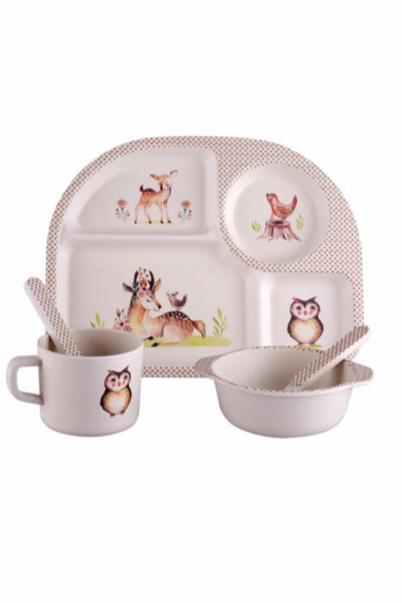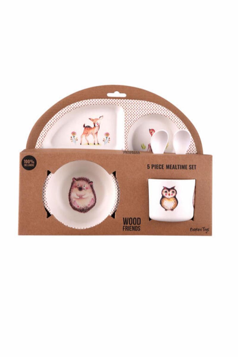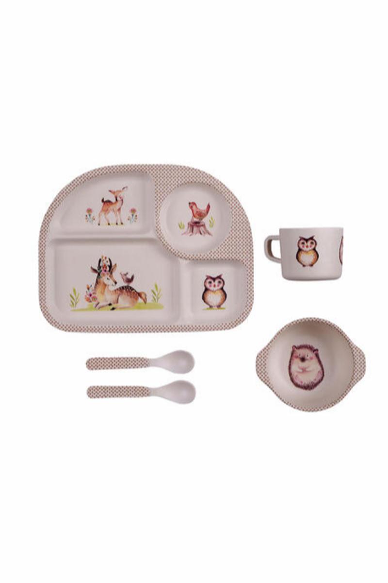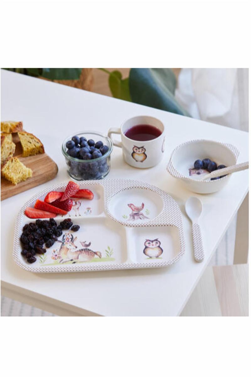 Dette vakre serviset med motiver fra Wood Friends og ulike dyr vil gjøre ethvert måltid litt morsommere for barna. Dette serviset gir en perfekt start når den lille skal begynne å spise selv. Innho...