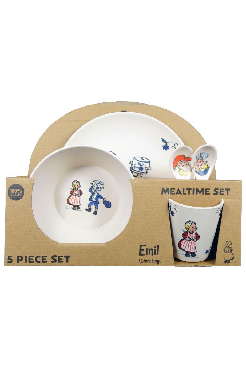 Melaminservise med motiv av Emil og Ida fra Lønneberget. Innholder tallerken, bolle, kopp og 2 skjeer. Kan vaskes i oppvaskmaskin. Ikke til bruk i mikrobølgeovn.