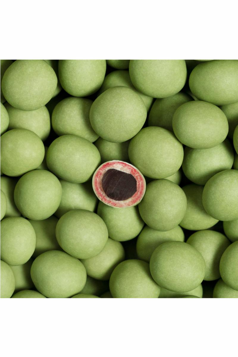 Forestill deg nyplukkede grønne jordbær og utsøkt rød lakris i en søt, fruktig bit. Nyt hvordan friske og syrlige toner fra sprø, grønne jordbær er perfekt balansert med seig rød lakris, alt drapert i silkemyk hvit sjokolade og et sprøtt, grønt sukkerskall for en ekstra syrlig twist.