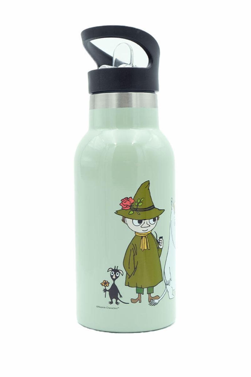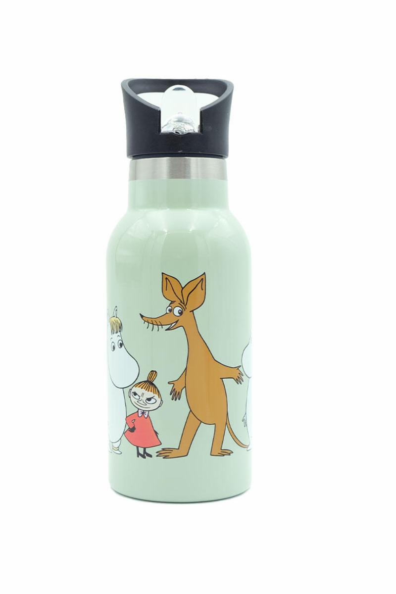 En hendig og fin drikkeflaske av rustfritt stål med motiv av Mummifamilien som holder godt på kalde drikker. Flasken rommer 350 ml, har et avtagbart sugerør, er enkel å åpne og lukke og holder tet...