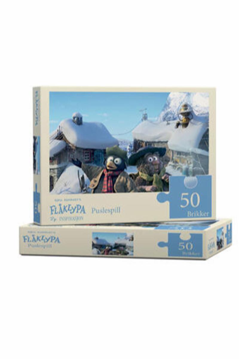 Bli med Solan og Ludvig inn i Flåklypa med dette flotte puslespillet! 50 brikker med vintermotiv fra kortfilmen Rekorden – perfekt for små Flåklypa-fans.
