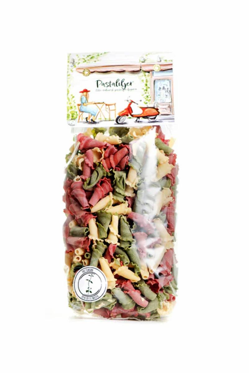 400g. Disse fargerike pastaliljene er laget med stolthet og håndverkstradisjon av familiebedriften Antica Madia i Liguria i Italia. Pastaen lages kun av durumhvete og vann, og får sine fine farger ...