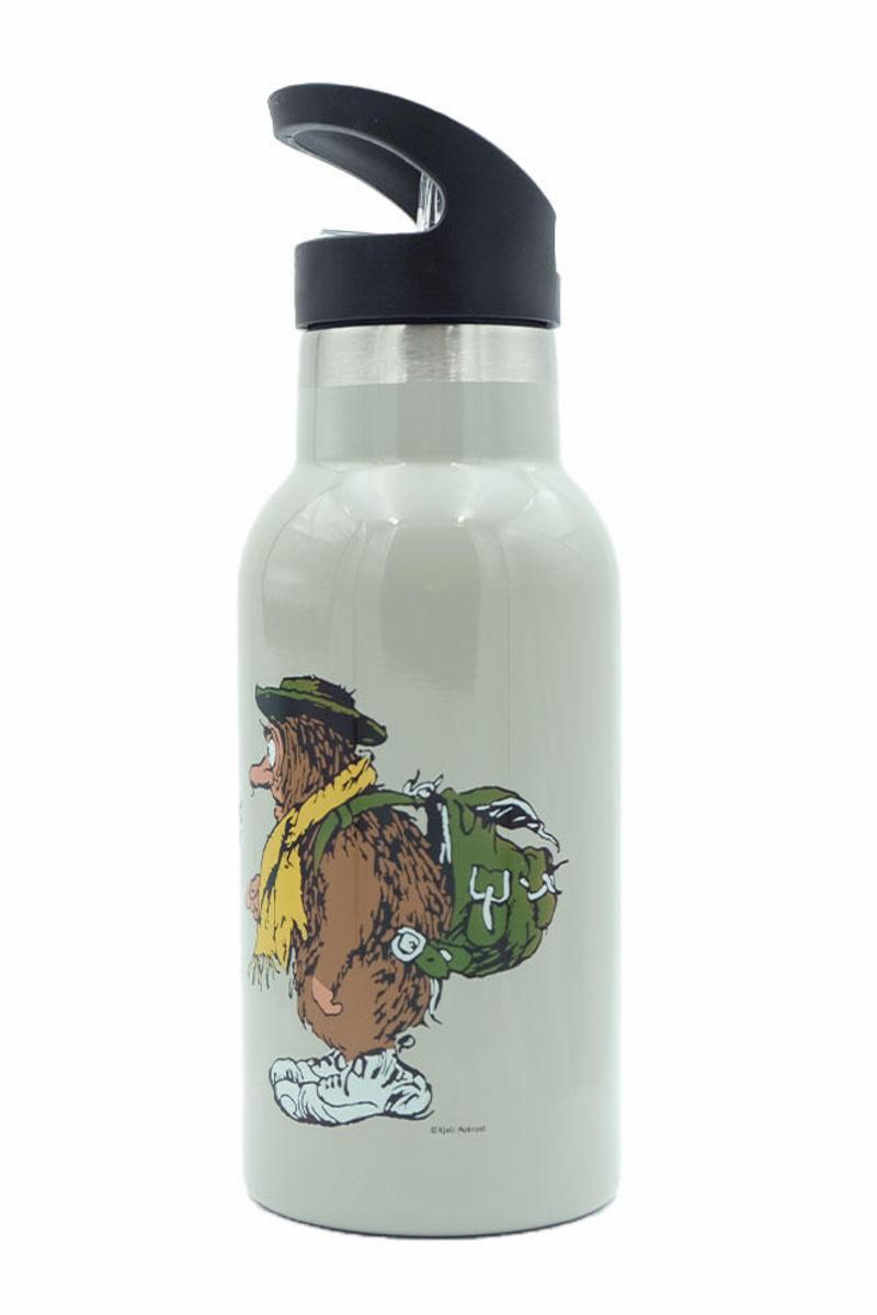 En hendig og fin drikkeflaske av rustfritt stål med motiv av det populære designet "Samtalen" med Solan og Ludvig som holder godt på kalde drikker.
